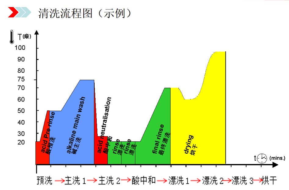 6、漂洗:純水漂洗,最高93攝氏度漂洗,一般建議75攝氏度漂洗;